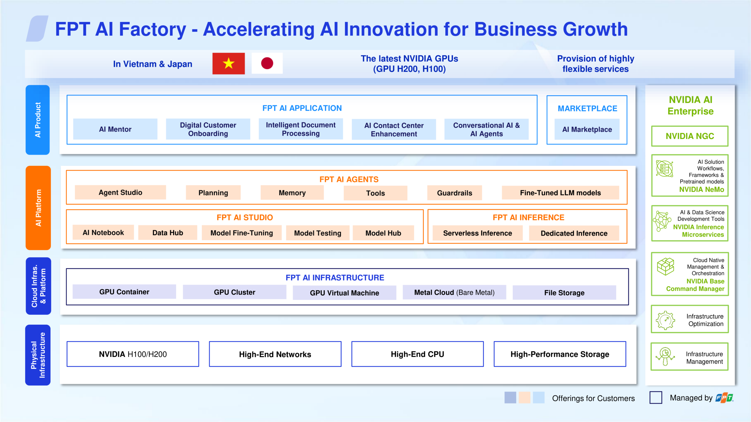 Amid this global shift, FPT AI Factory stands at the forefront of the region’s AI transformation. It is the first of its kind in Vietnam and a trusted infrastructure partner for enterprise customers in Japan. Developed in strategic collaboration with NVIDIA, FPT AI Factory is purpose-built to accelerate the AI-native evolution of businesses and governments alike.