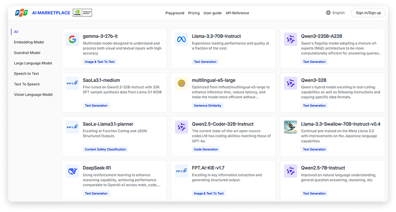 Leverage open-source and FPT’s specialized multimodal models for chat, code, and more.